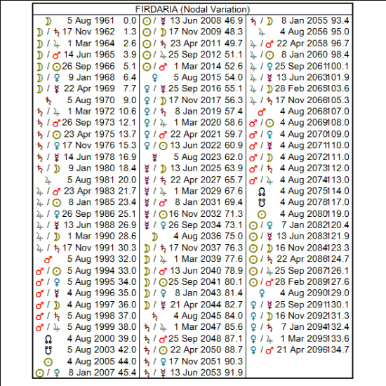 The first planet the Moon moves over after birth is Venus. We have already seen that Venus is important because it is the ruler of the duad of the MC, so the Moon emphasising this planet increases its power. In Cancer is further ratification of his family, home and homeland orientation and in the 5th house suggests children and creative outlets would be important for him – as an aside, Venus in Cancer is a very female combination of energies and in this 5th house this has given him daughters.